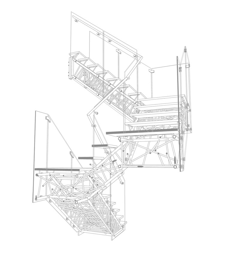 This project is the home of two art collectors on New York’s Upper West Side. Located in the top two floors of a Mckim Mead and White building, the design merges two apartments to create a spacious domestic art gallery where home and art are intertwined. The spaces are strung in an open sequence around a library core, from the entrance to the kitchen with a free standing stair and living spaces in between. Continuous long walls enclose the space to display works from the owners’ collection: Tomma Abts, Lawrence Weiner, Franz Ackermann and more. Full-height, translucent moveable partitions can be positioned to provide private enclosures when needed without reducing the overall scale of the space. A material palette of stainless steel, translucent white Corian, blackened steel and walnut was selected and forms a quiet but sharp backdrop for the art. Precisely crafted details are expressed most noticeably in the stair’s diagonal connections, the door frames and countertops. Each is transformed into an opportunity to express the material’s capabilities and the beauty of carefully crafted detail assemblies.
